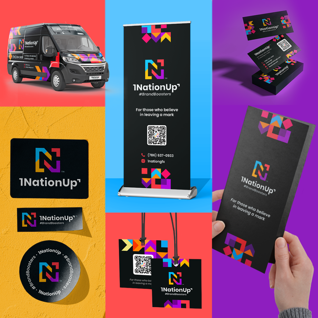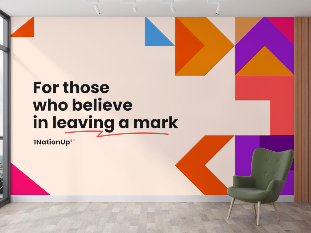 Our complete range of professional in-house branding & marketing solutions, coupled with our printing and manufacturing capabilities, mean that 1NationUp™ can take you from start-up through growth without ever having to switch gears! It all comes together with one purpose: bringing your business UP and distinguishing your brand in the market for many years. Not only by making a great impression but by leaving a mark.